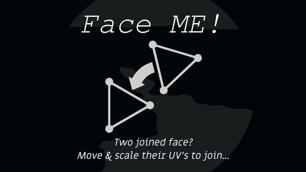 Face Me! uses two selected faces as reference points for adjusting a UV map, letting them act as a single unit for more precise corrections. It moves, rotates, and scales the UVs of the chosen face, as shown in the demo video above.