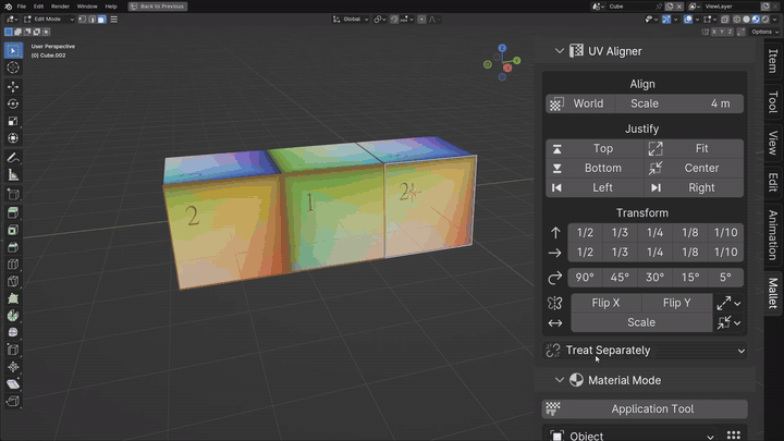 “Treat Separately” will process all selected faces individually. When justifying, each face moves independently to align with the specified edge, disregarding the positions of other faces.