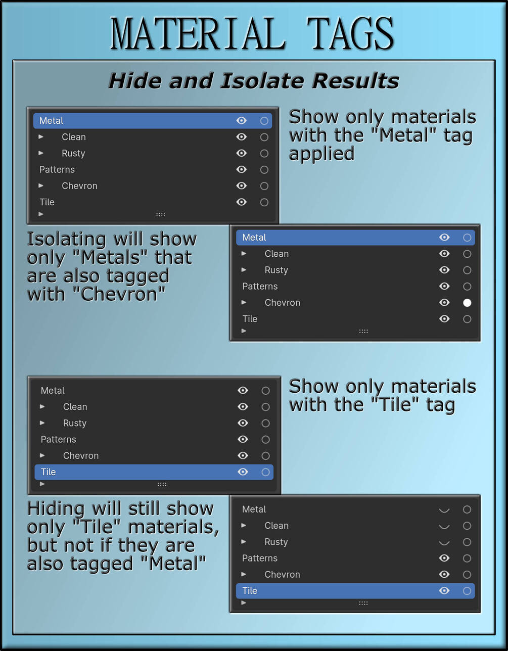 Material Tags is here to streamline it all. This tag-based management system lets you easily view, edit, and organize your materials by assigning multiple tags to each one, giving you complete control over categorization. Forget endlessly scrolling through vague material names—just search by tags and instantly find what you’re looking for.